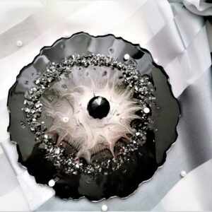 Taca dekoracyjna żywica czarna + kruszone szkło kryształowa