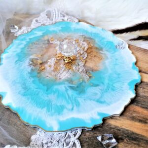 Taca / PATERA dekoracyjna żywica Pastel turkus