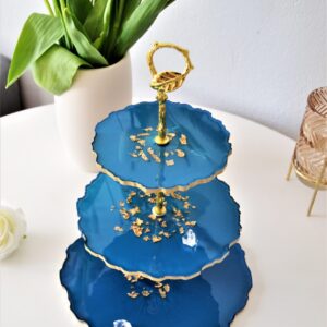 Patera na ciasto/owoce 3 poziomy Granatowo złota z atestem