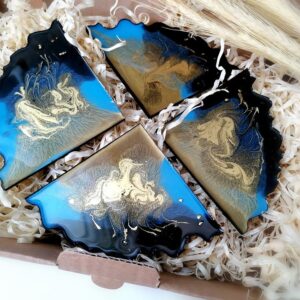 Podkładki z żywicy Czarno złote - niebieskie 4 szt