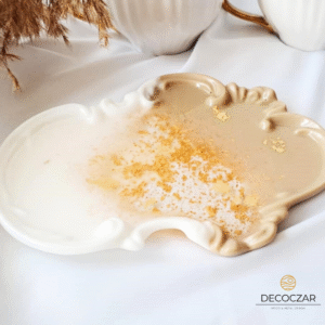 TACA DEKORACYJNA BIAŁO BEŻOWO ZŁOTA "MINIMALISTYCZNY BLASK"