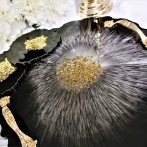 Taca dekoracyjna z żywicy Czarno złota + 2 podkładki