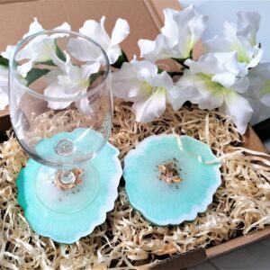 Podkładki z żywicy Biało-Turkusowe 2 szt