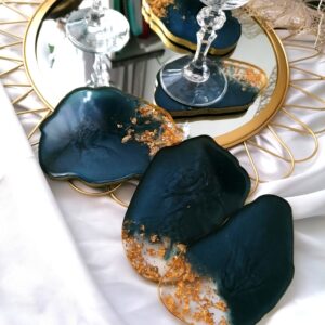Podkładki z żywicy Głęboki granat - złoto 5 szt