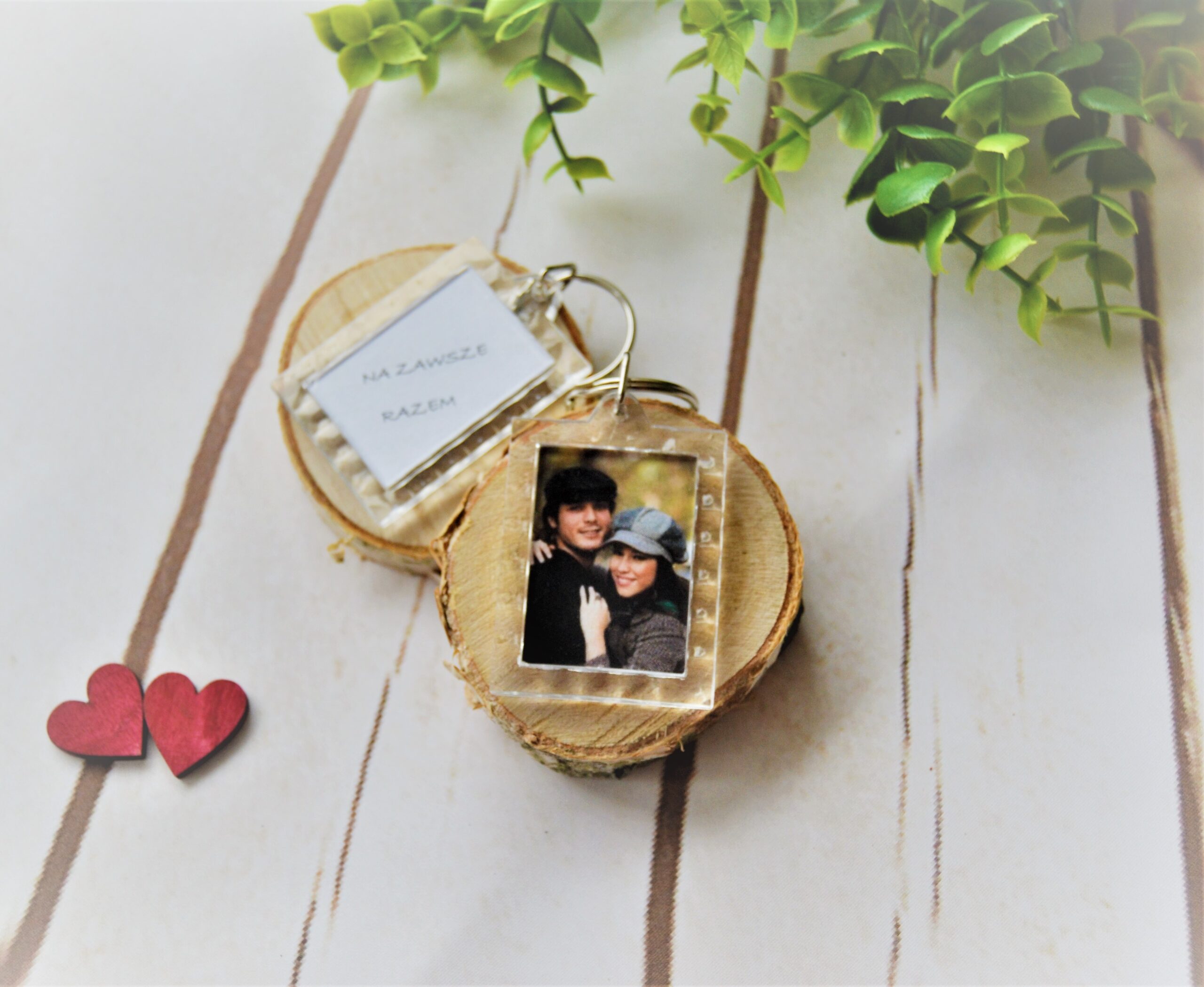 Brelok jest dwustronny możemy umieścić zdjęcie oraz krótki tekst