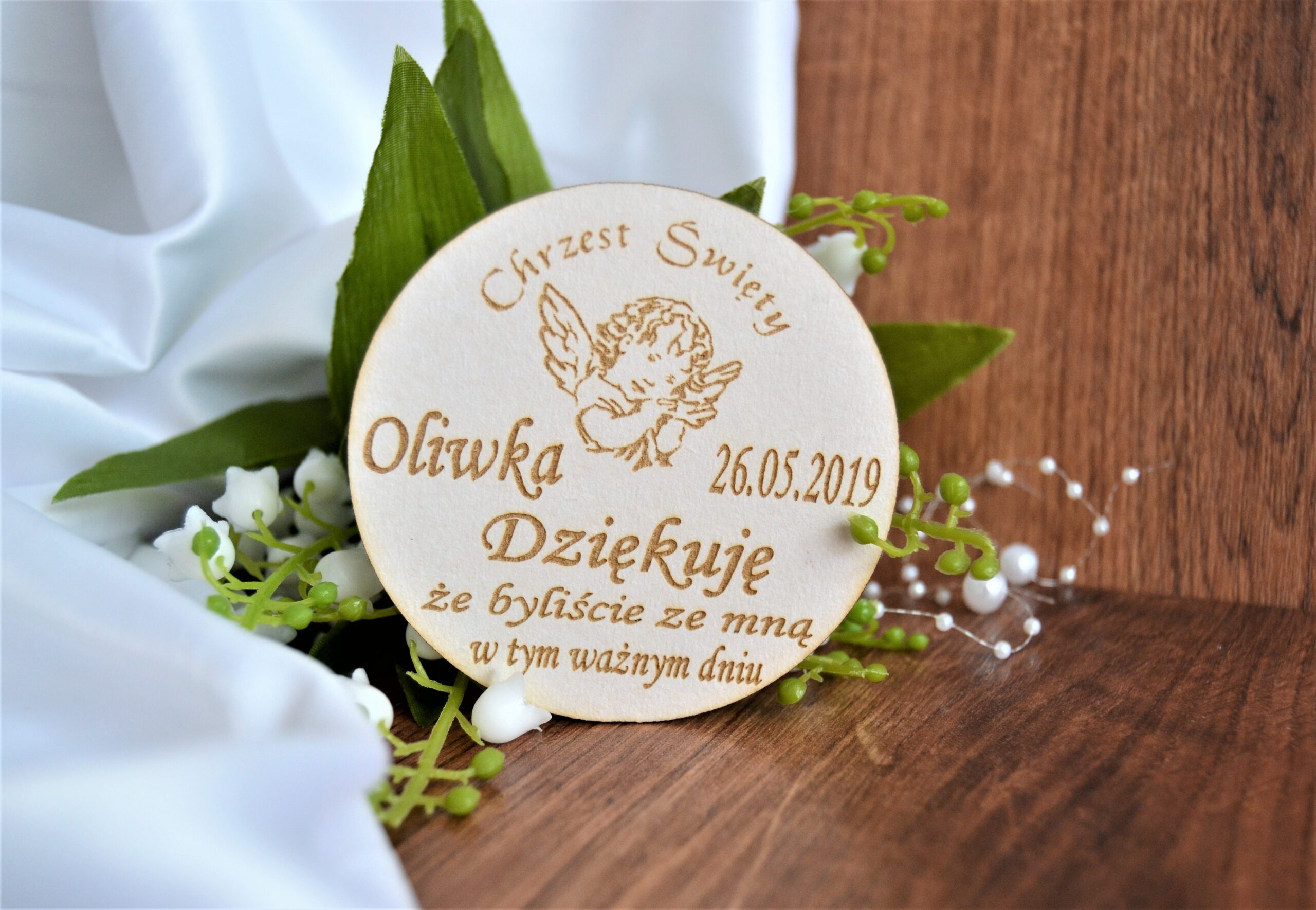 Podziękowanie drewniane dla gości na Komunię Świętą
