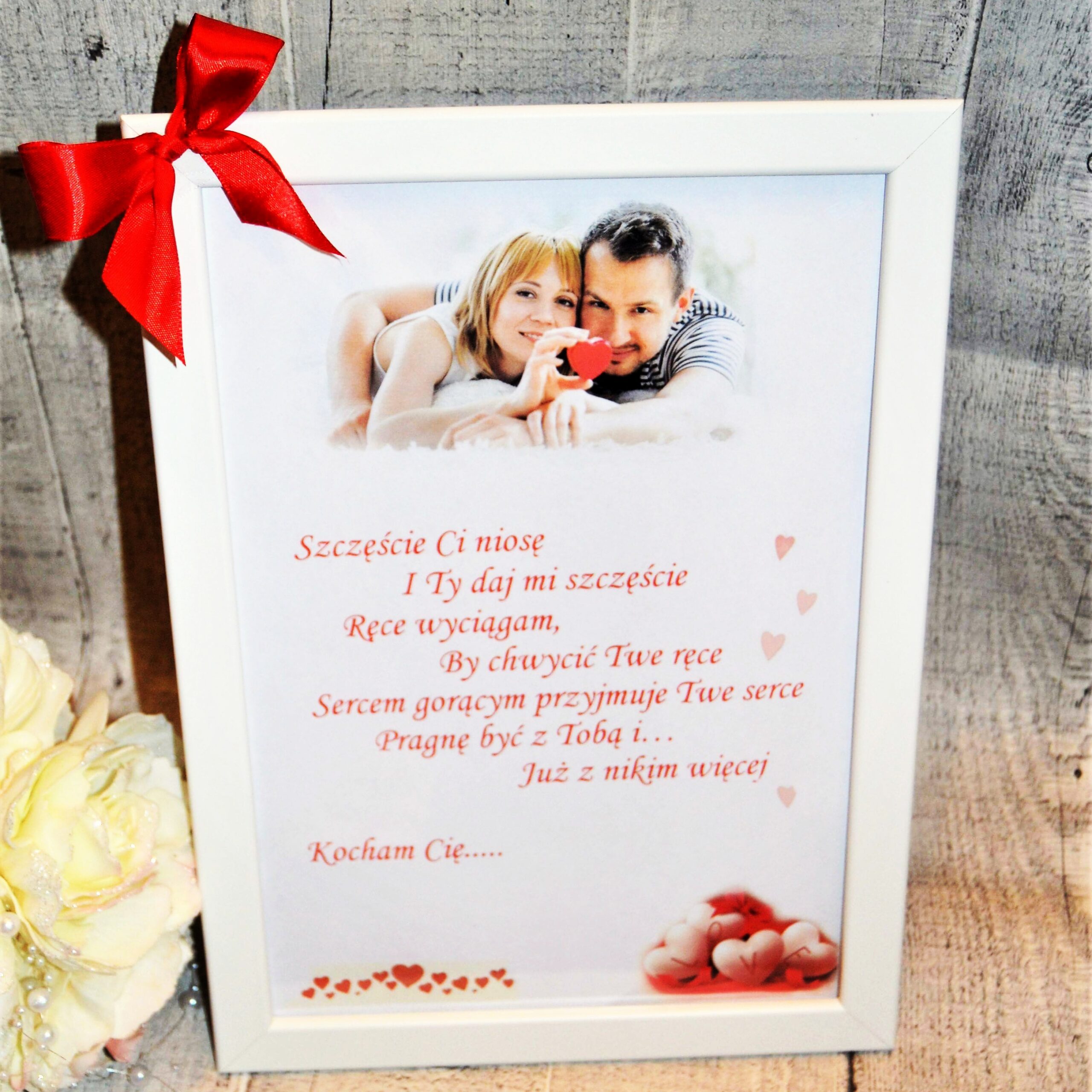 Ramka dekoracyjna z własną dedykacją i zdjęciem bliskiej osoby.