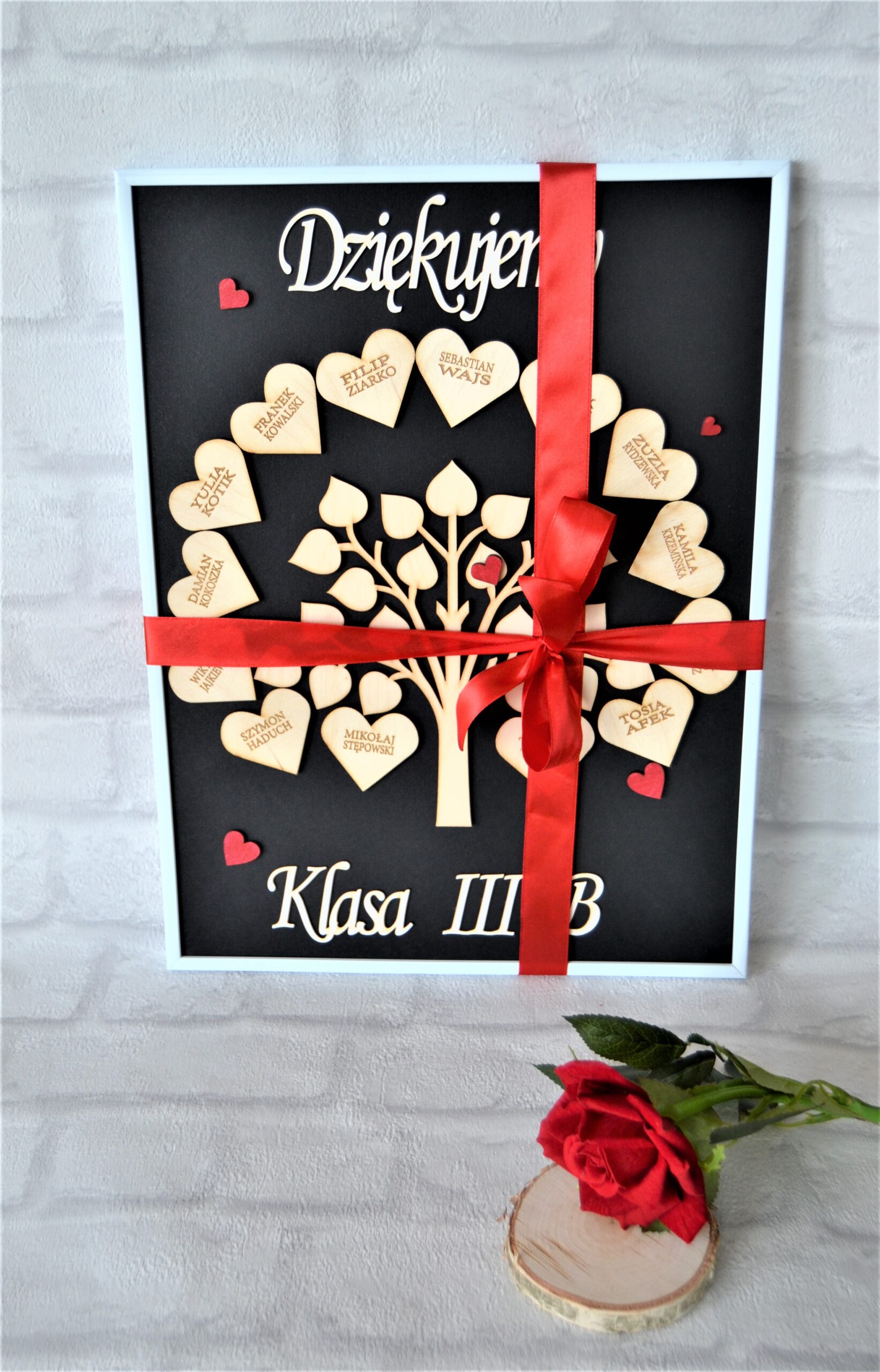 Na sercach grawerowane są tylko imiona – jeśli dodatkowo ma być nazwisko koszt 1,5 zł ( proszę sumę nazwisk doliczyć do przelewu )