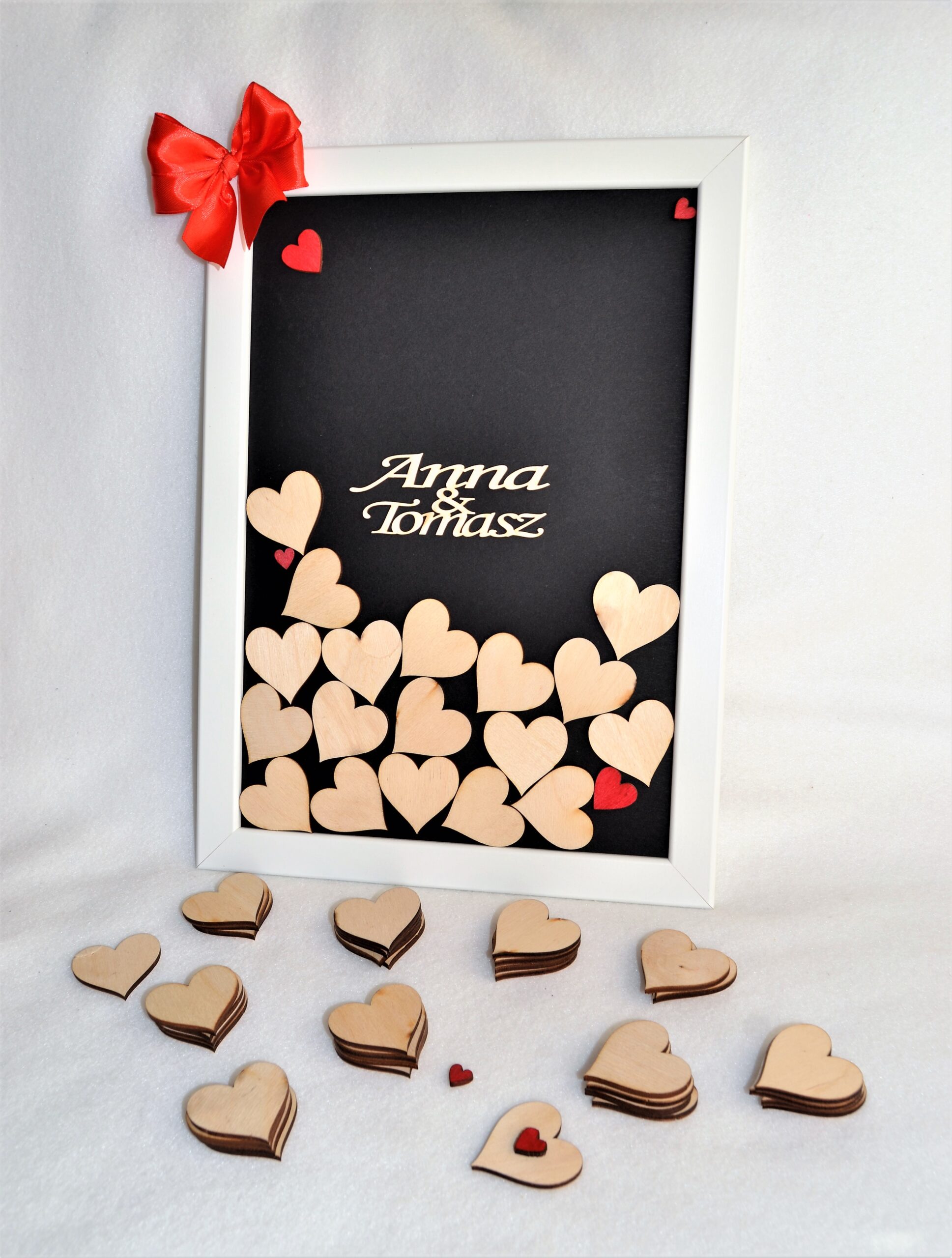 Wymyśl życzenia, wpisz je na serduszka i przyklej.