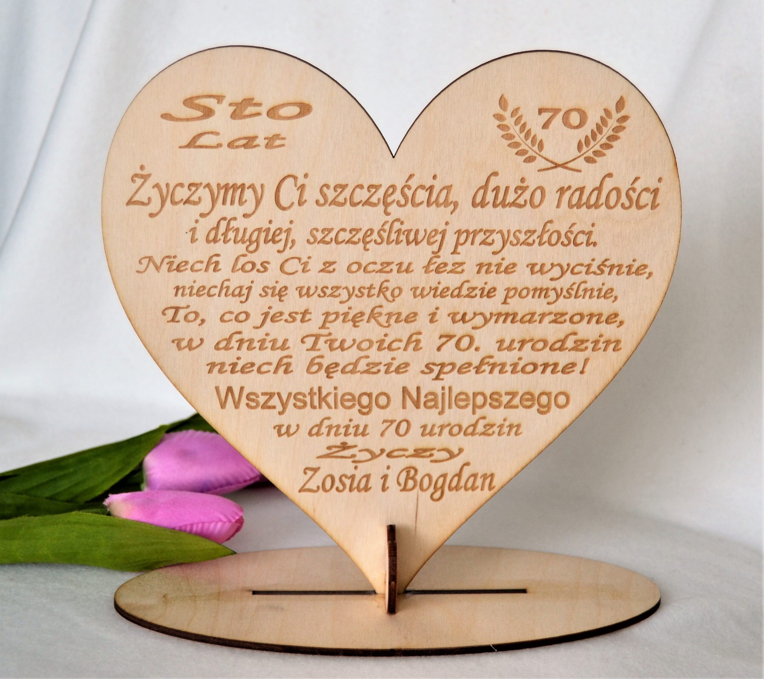 ŻYCZENIA Z OKAZJI 70-tych URODZIN – DEDYKACJA NAPISANA LASEROWO NA DREWNIE