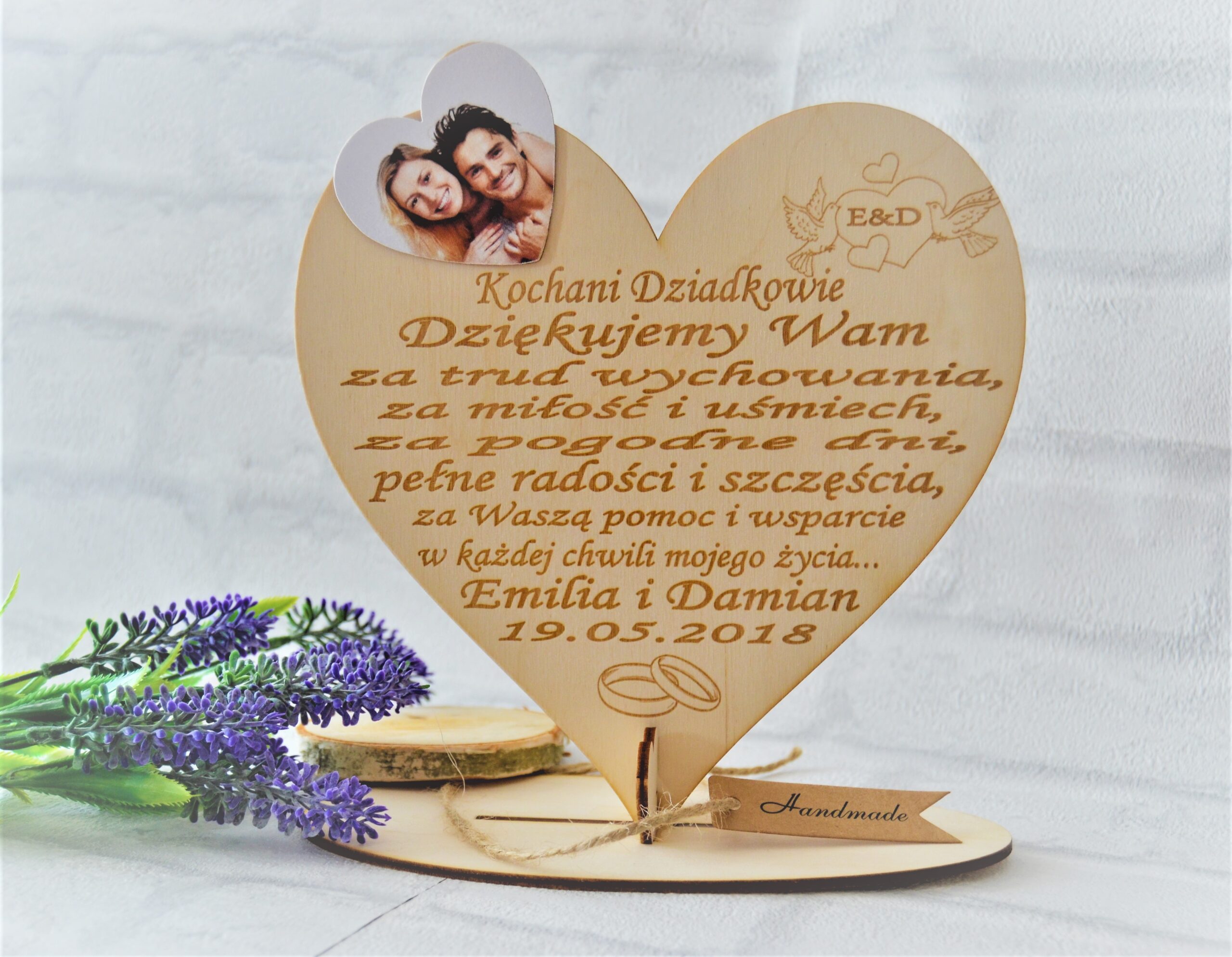 Serce z grawerem podziękowanie dla rodziców dziadków chrzestnych.