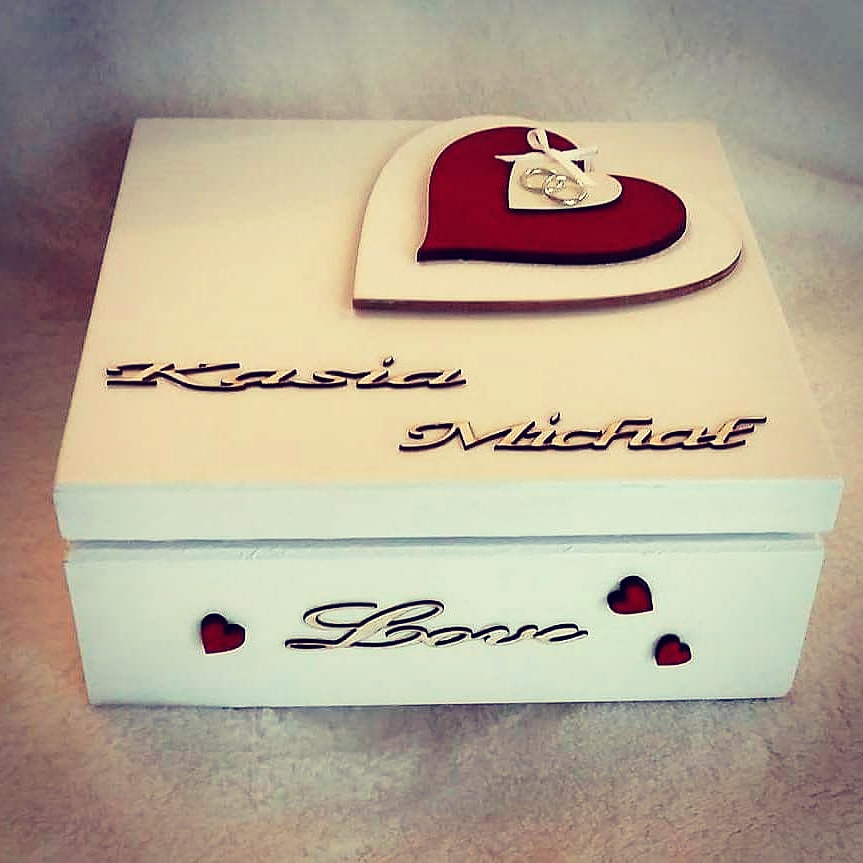 Wyjątkowa szkatułka na drobiazgi ślubne bądź pieniążki z indywidualną dedykacją