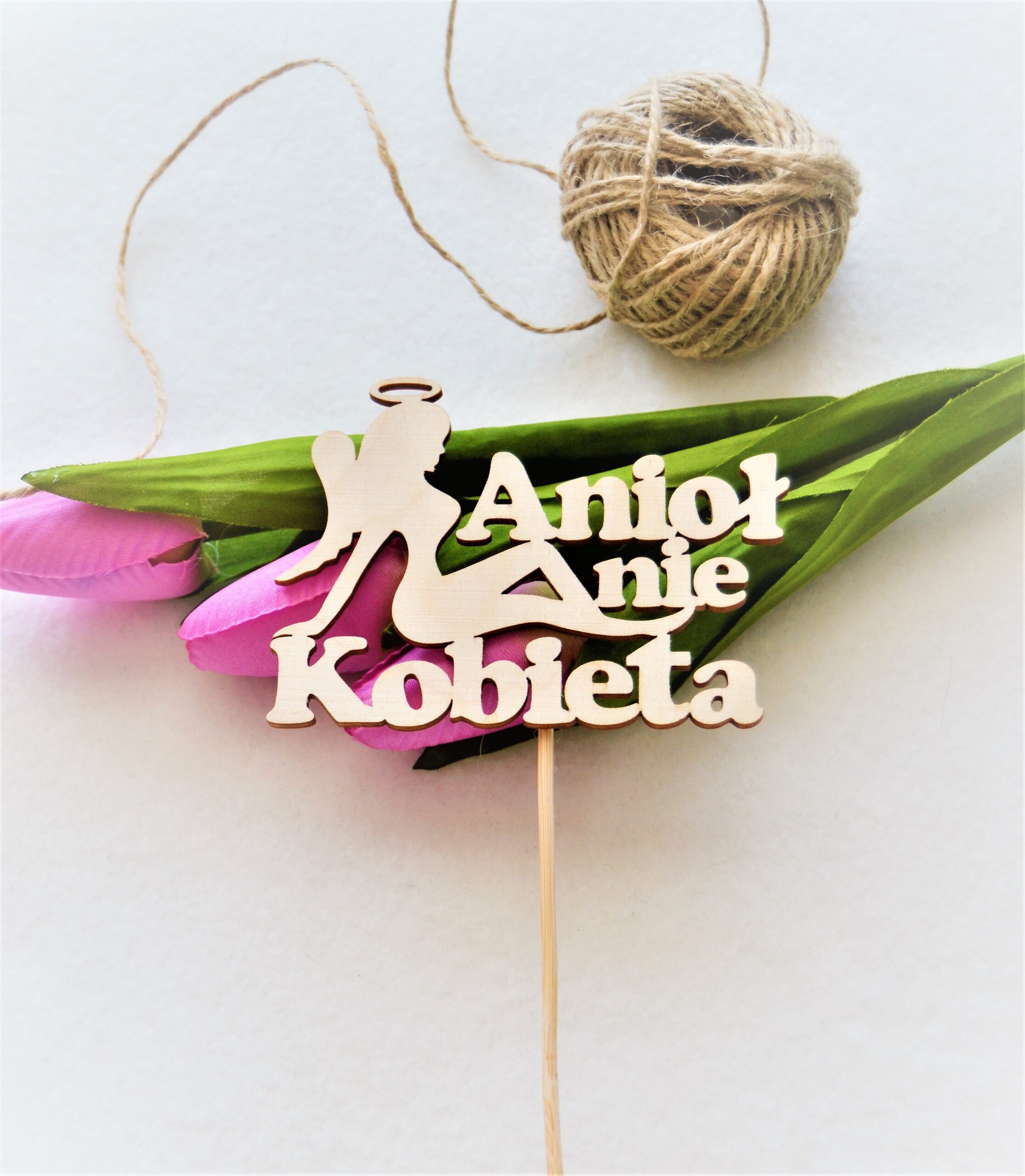 Wykonany ze sklejki gr. 3mm, ciętej laserem dzięki czemu krawędzie są idealnie gładkie. Wysokość całego toppera około 7 cm, szerokość 10 cm.