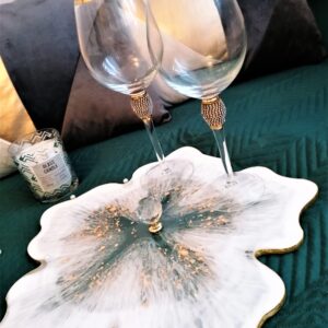 Taca / PATERA kwiat dekoracyjna żywica biało złota kryształowa